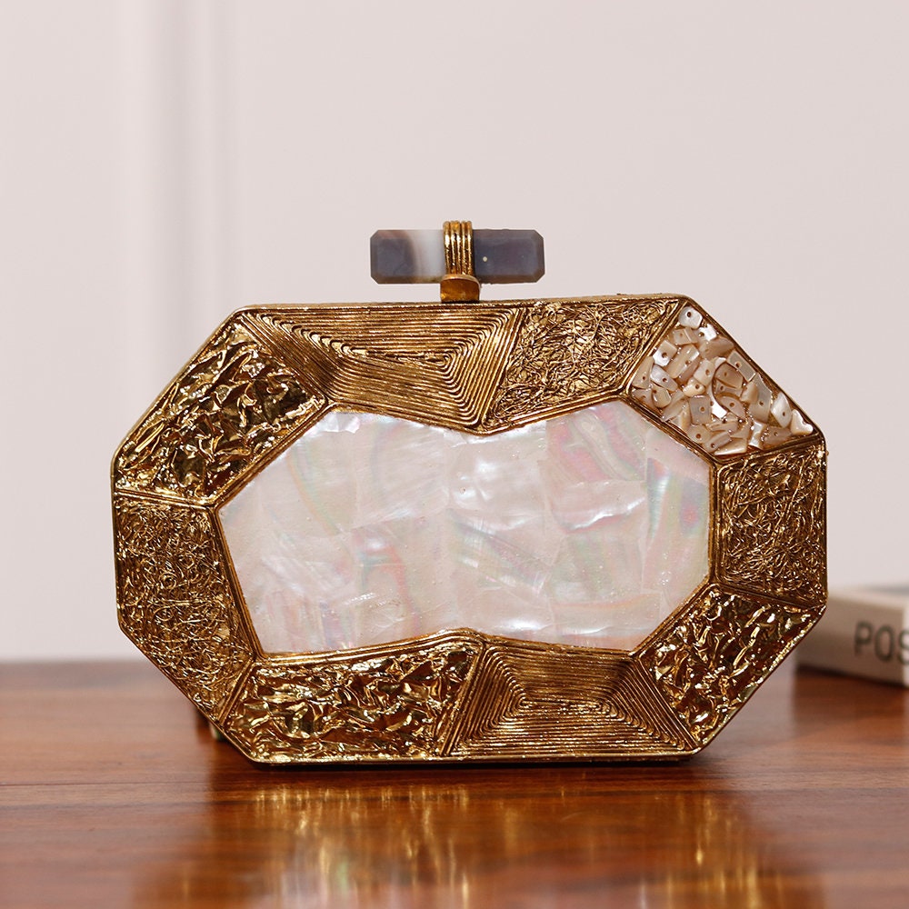 Niche fashionistas: Tired of the same old bags, this bag’s unique octagonal silhouette and gold-carved mother-of-pearl design create a unique style statement, making it a recognizable fashion icon for both evening wear and everyday wear.