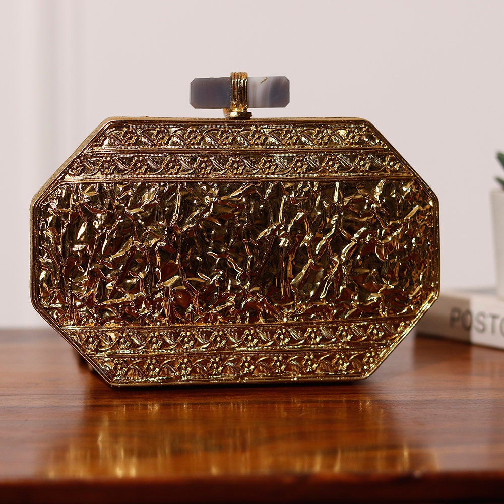 Gold Metal Hand-Carved Craftsmanship: Crafted from a vintage-textured gold alloy, the bag features diverse hand-carved patterns in various areas, ranging from intricate floral carvings to 3D geometric lines. Anti-oxidation treatment preserves its luxurious luster. Each carving requires over 10 hours of work, and each detail bears the meticulous care of the artisans, recreating the artistic quality of imperial metalware.