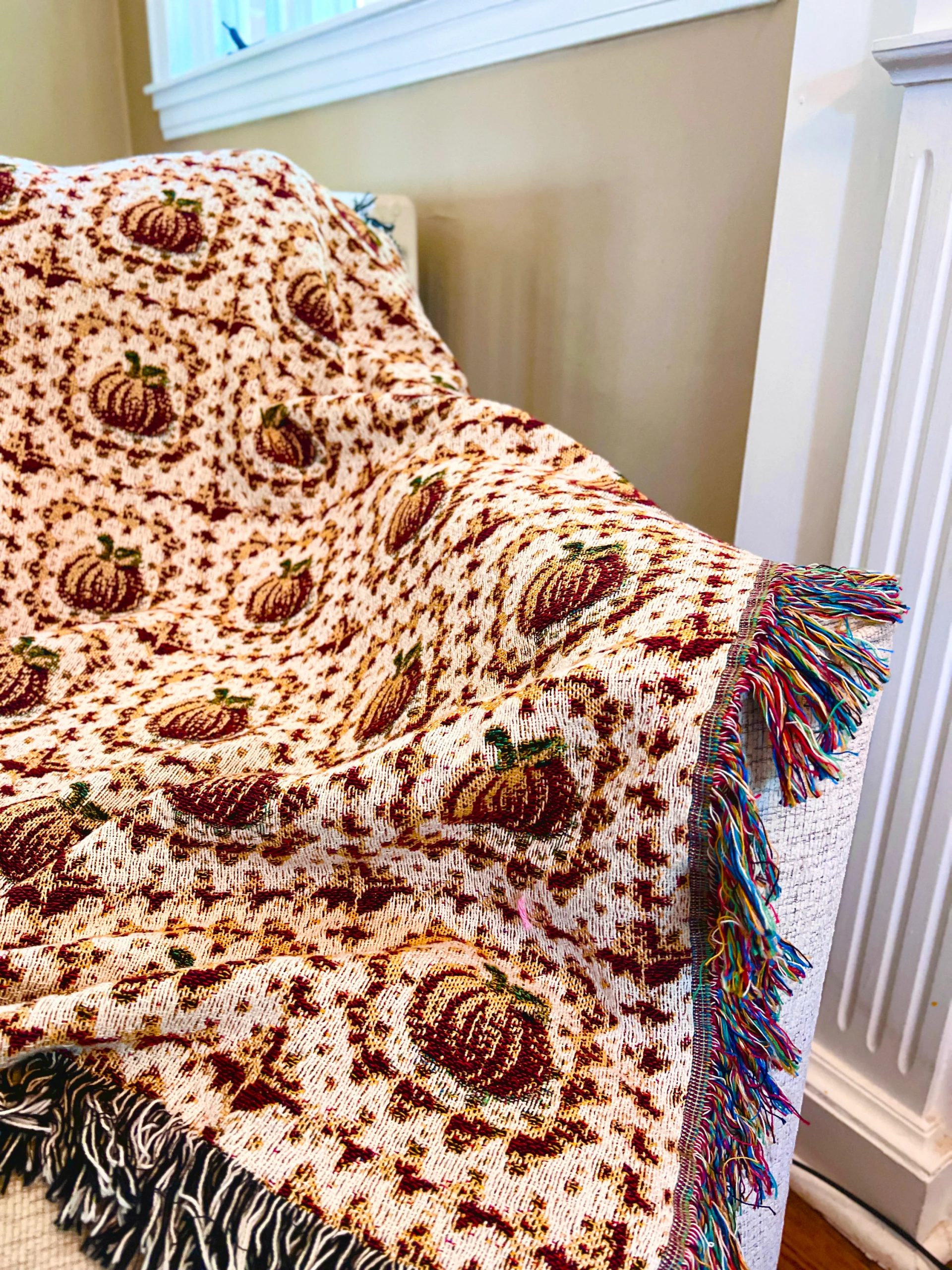 Be the first to review “Vintage Pumpkin Pattern Fringed Blanket”