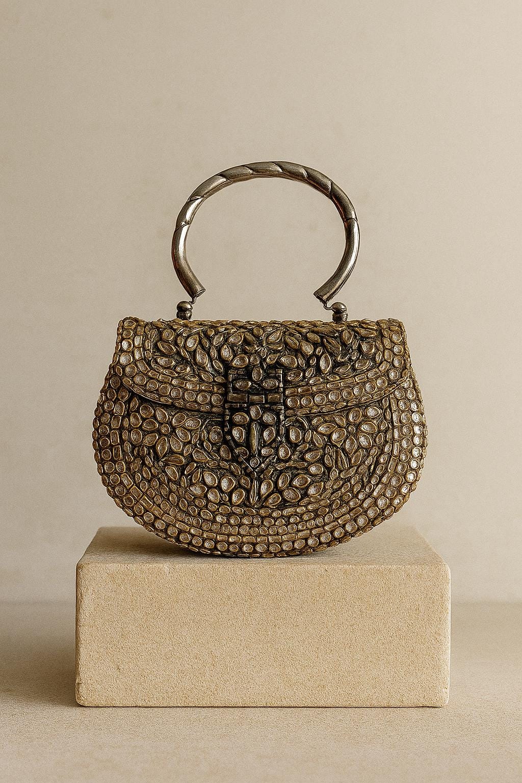 Adorned with beads and metal accents, it exudes a sense of luxurious heritage.