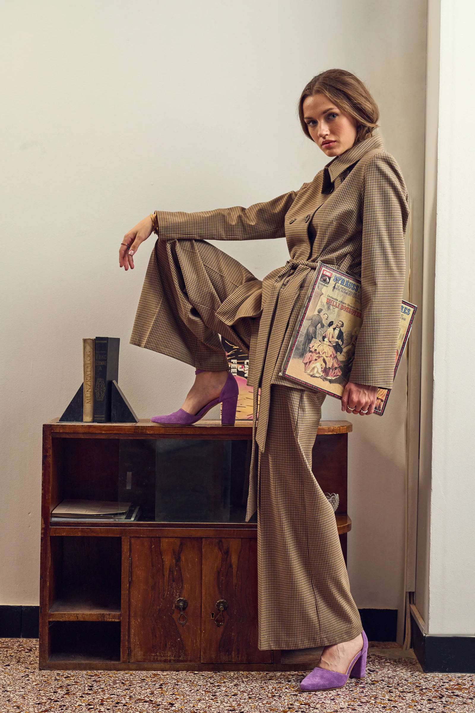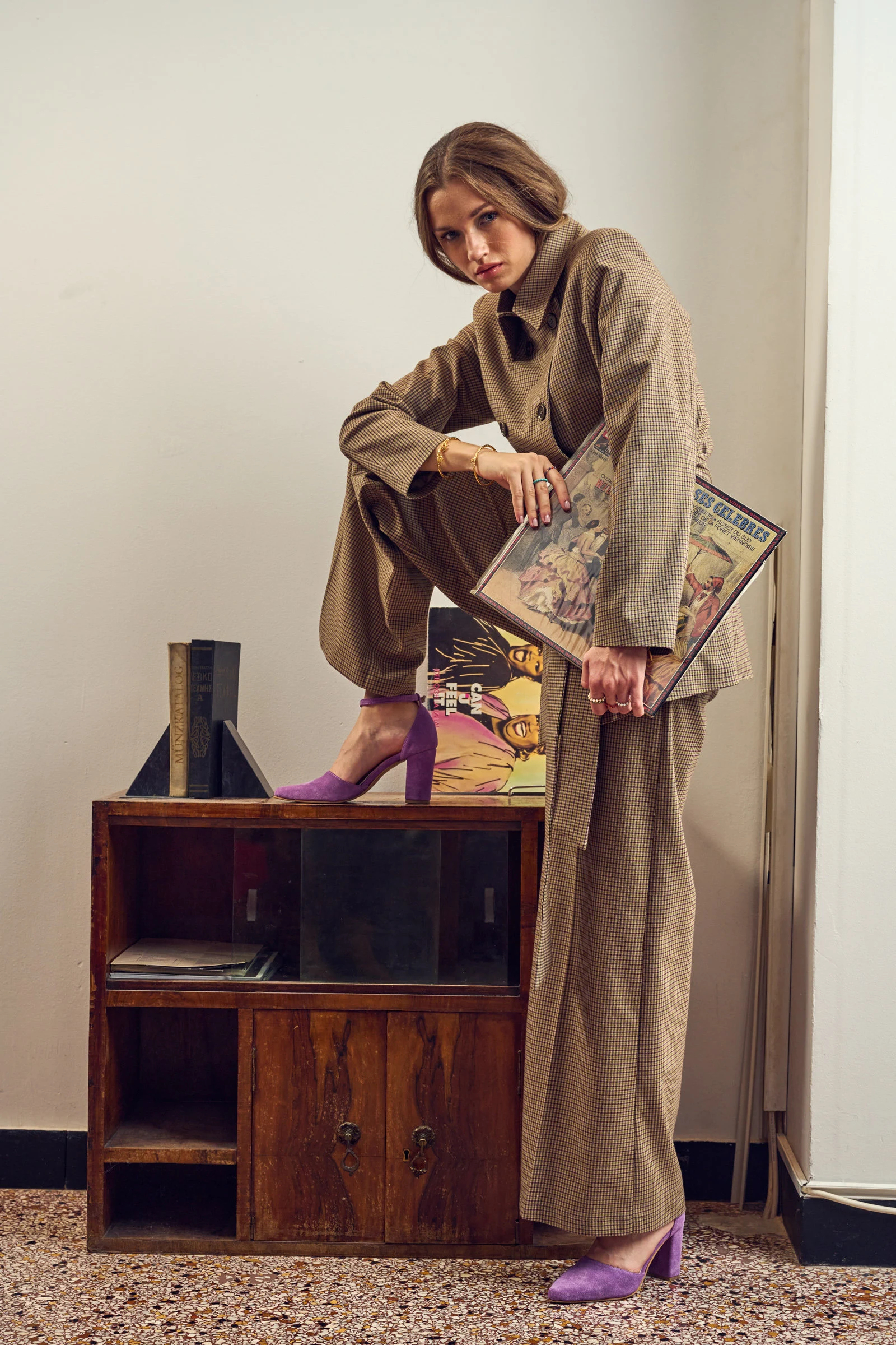 The supple violet suede and clean, soft square toe design give these heels a sophisticated blend of vintage and modern elegance. A delicate, adjustable ankle strap ensures a comfortable fit, while the balanced chunky heel provides a confident lift and prevents wobbling. Lightweight forefoot cushioning ensures comfortable walking from work to a relaxing drink.