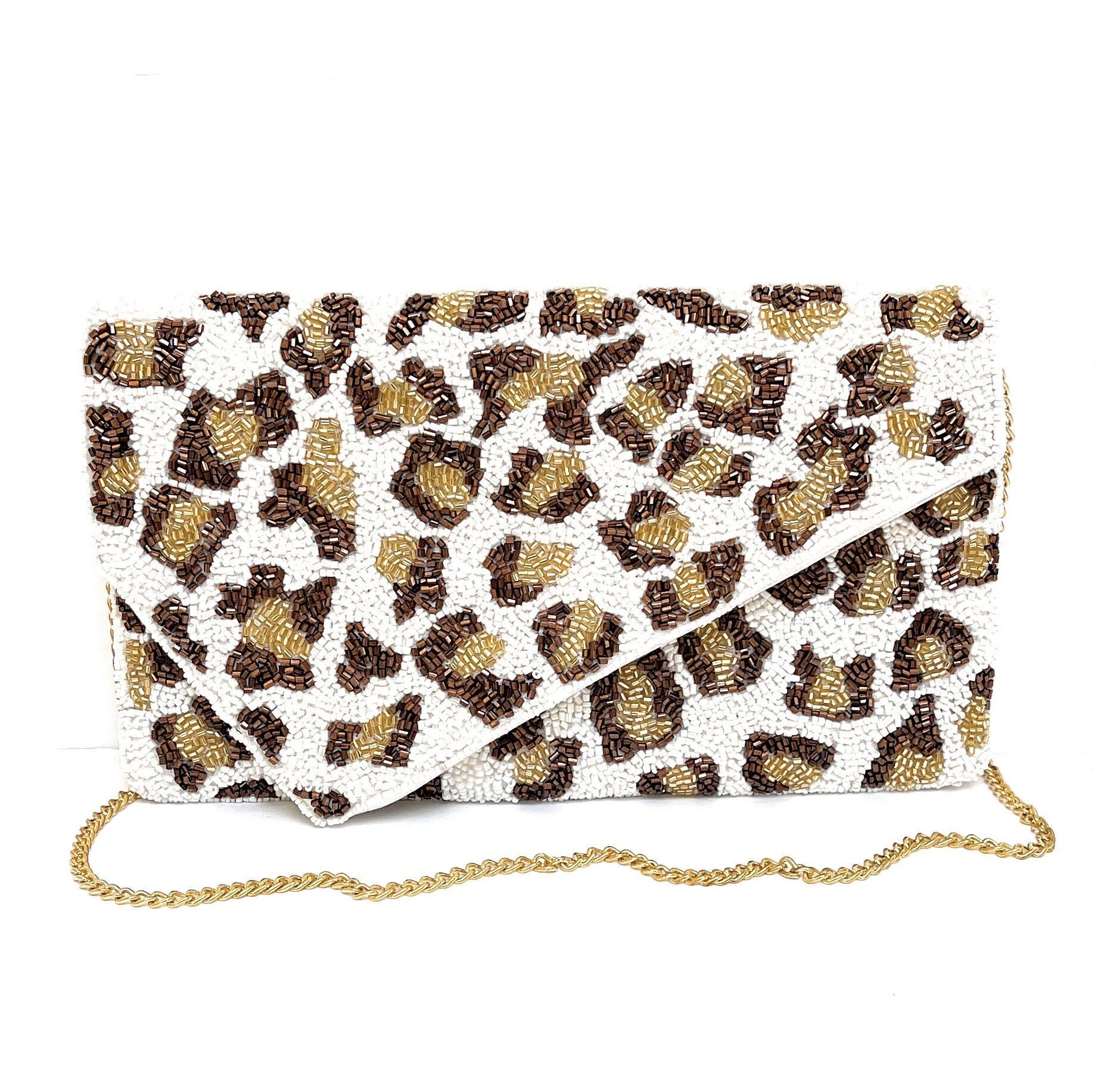 Designed with a “vintage wild leopard print” as its core theme, the white and brown beaded base accurately reproduces the leopard’s spotting texture, perfectly blending the fashionable appeal of classic leopard print with the artistic quality of hand-beaded craftsmanship. Combining wild charm with classic versatility, this stylish bag is a signature style for fashionistas and followers of the wild style, injecting a touch of retro, wild style into any outfit.