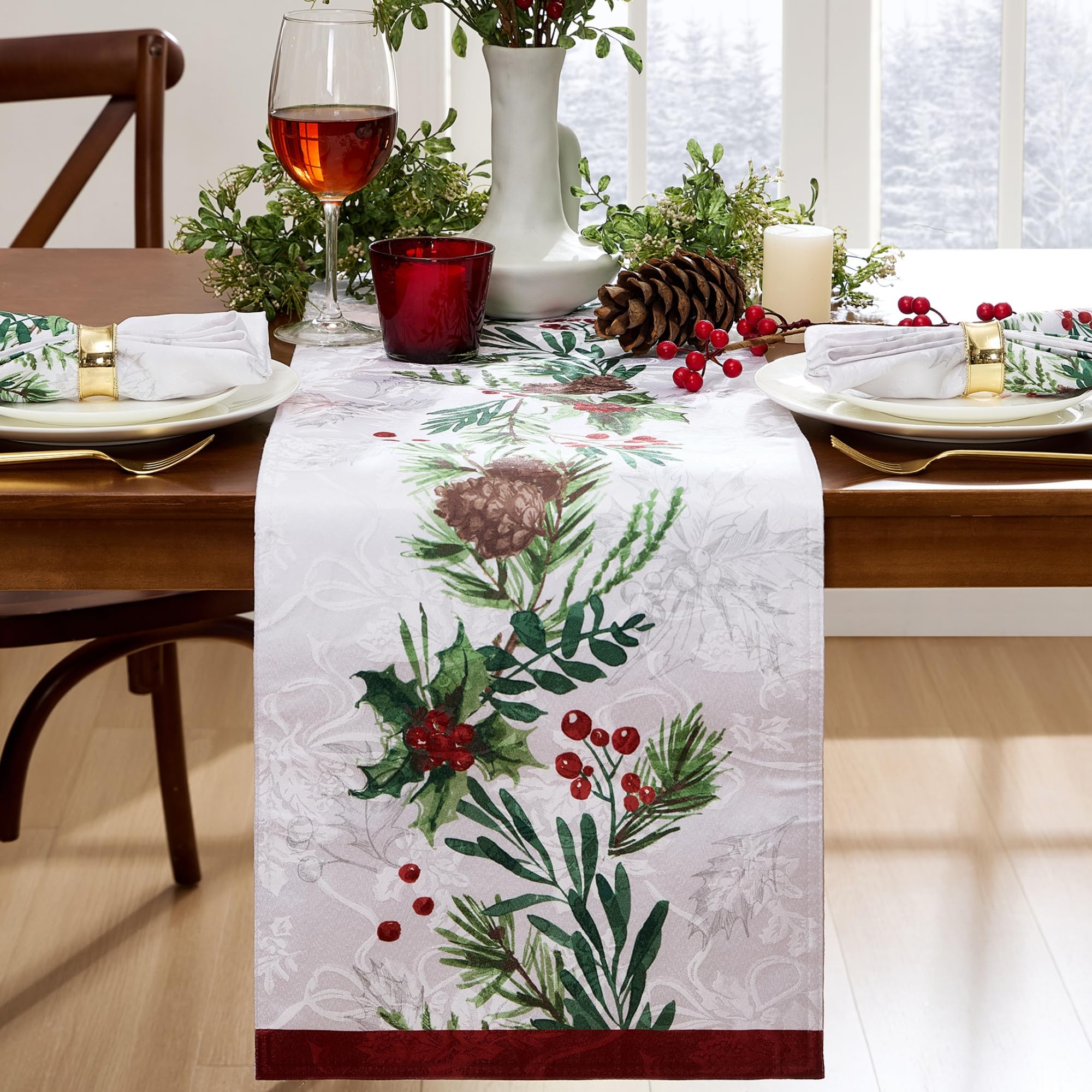 Elegant, festive, and naturally beautiful—this tablecloth transforms every winter dinner into a warm celebration, surrounded by the exquisite details of nature.