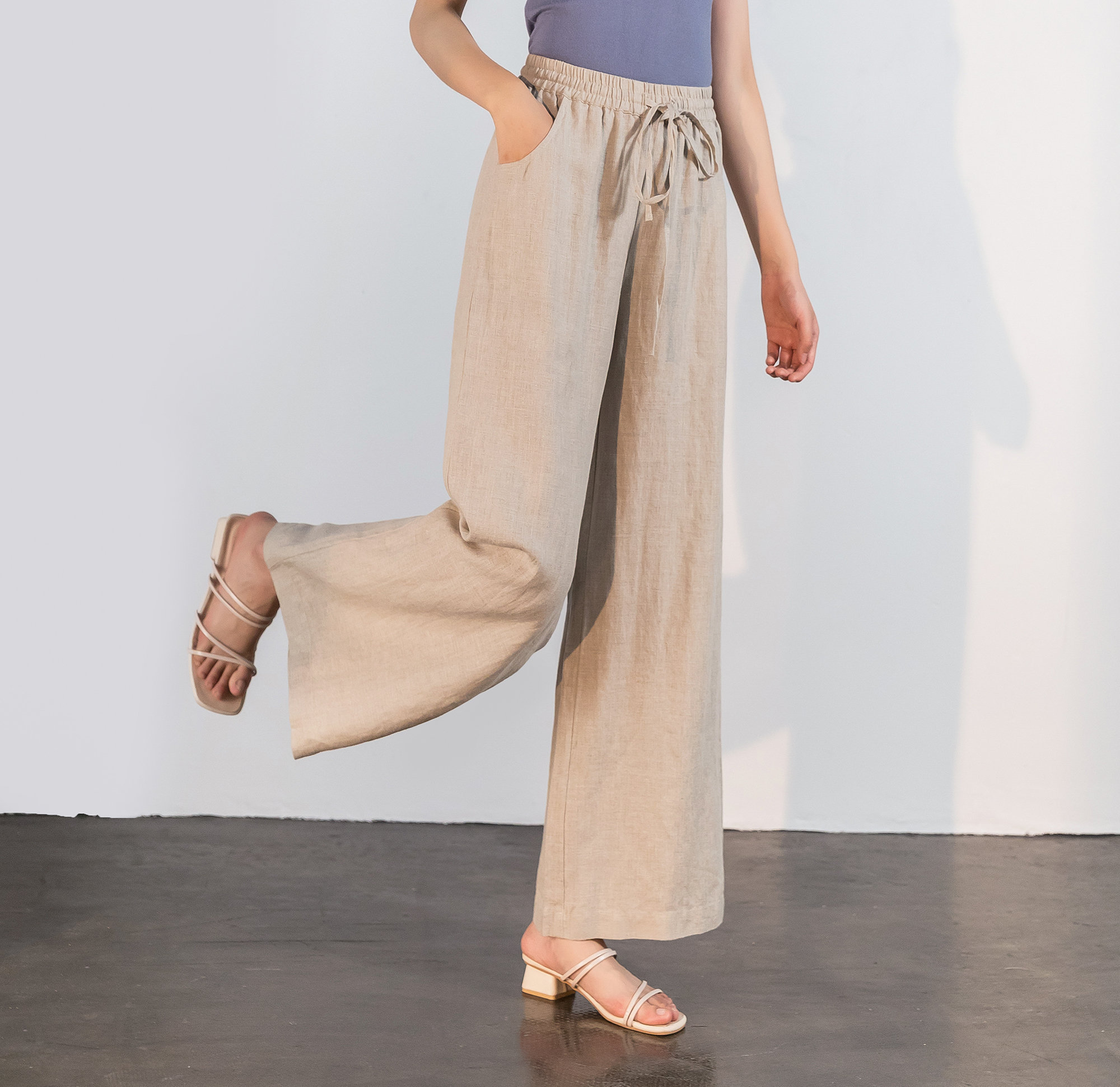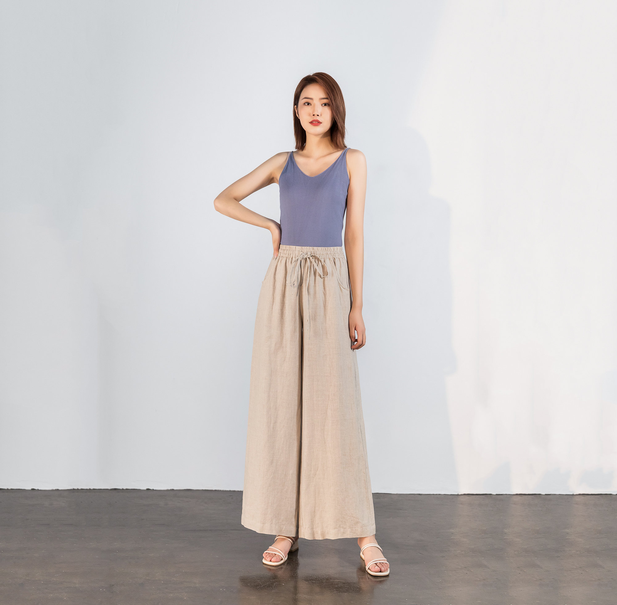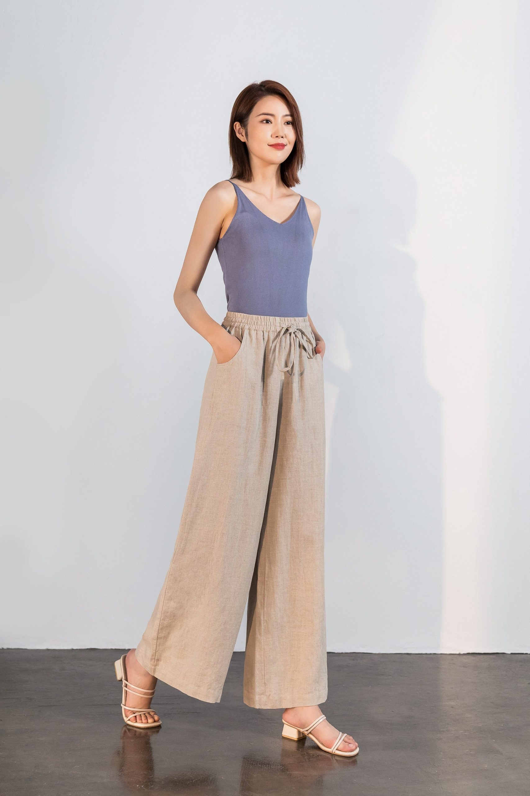 Can be paired with tank tops, T-shirts, crop tops, linen shirts, or sandals