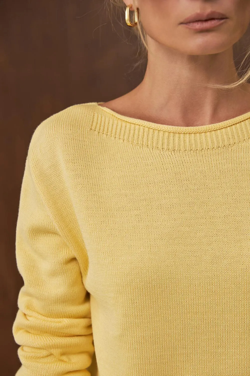 This light yellow knit sweater features a clean and minimal design that brings a soft, fresh touch to everyday dressing. The simple crew neckline creates a classic silhouette, while the smooth knit texture gives the piece a refined and versatile look. Its understated style makes it easy to wear on its own or layer through the cooler seasons.