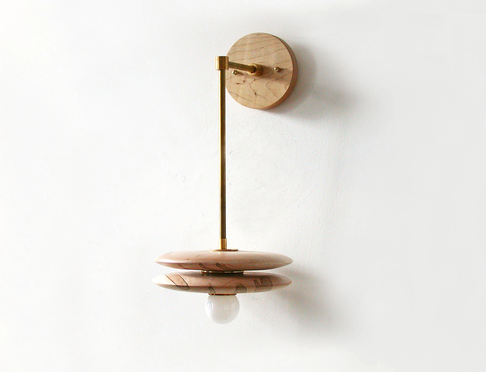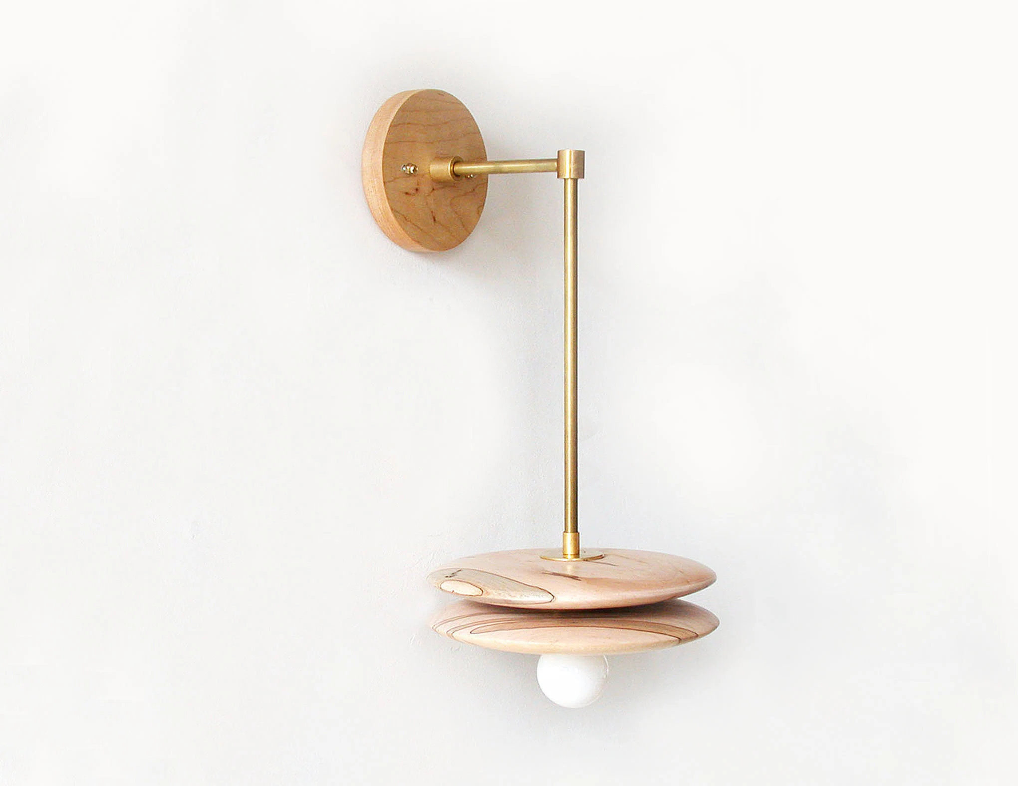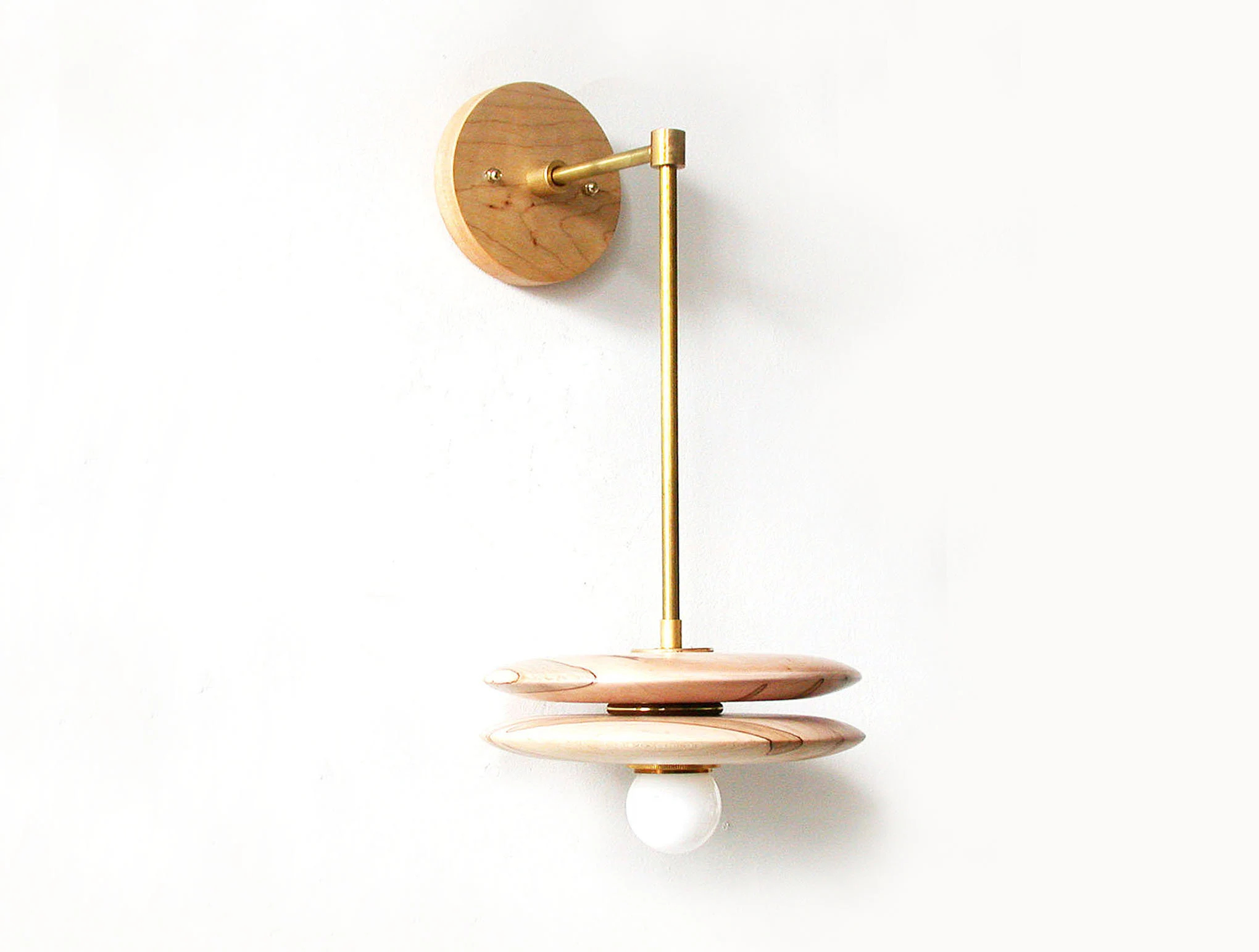 Be the first to review “Wood grain disc and brass pendant wall light”